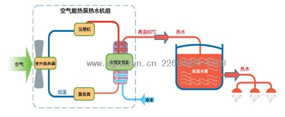 空氣能熱水器又稱之為空氣源熱泵,熱泵熱水器,空氣能熱泵等,是當今世界上最先進、能效比最高的熱水設備——空氣能熱泵熱水器成功地運用逆卡諾循環(huán)原理,采用電能驅動,通過傳熱工質把自然界的空氣低溫熱源中無法利用的熱能有效吸收,并將吸收回來的熱能提升至可用的高品位熱能并釋放到水中的設備。在不同工況下熱泵熱水器機組每消耗1KW電能就能從低溫熱源中吸收2~6KW的免費熱量,節(jié)能效果非常顯著。