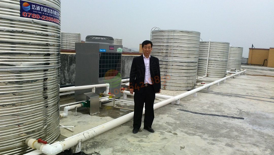 東莞聯合技工學校2100人學生宿舍42噸空氣能熱泵熱水工程-公司劉經理與項目合影
