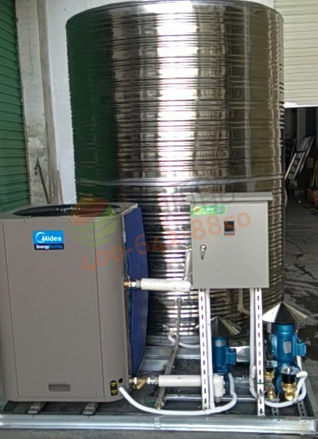 RSJ-200/MS-540V1(5P)美的空氣能熱泵主機(jī)1臺(tái)、5噸圓形立式不銹鋼保溫水箱1個(gè)及相關(guān)配套設(shè)施
