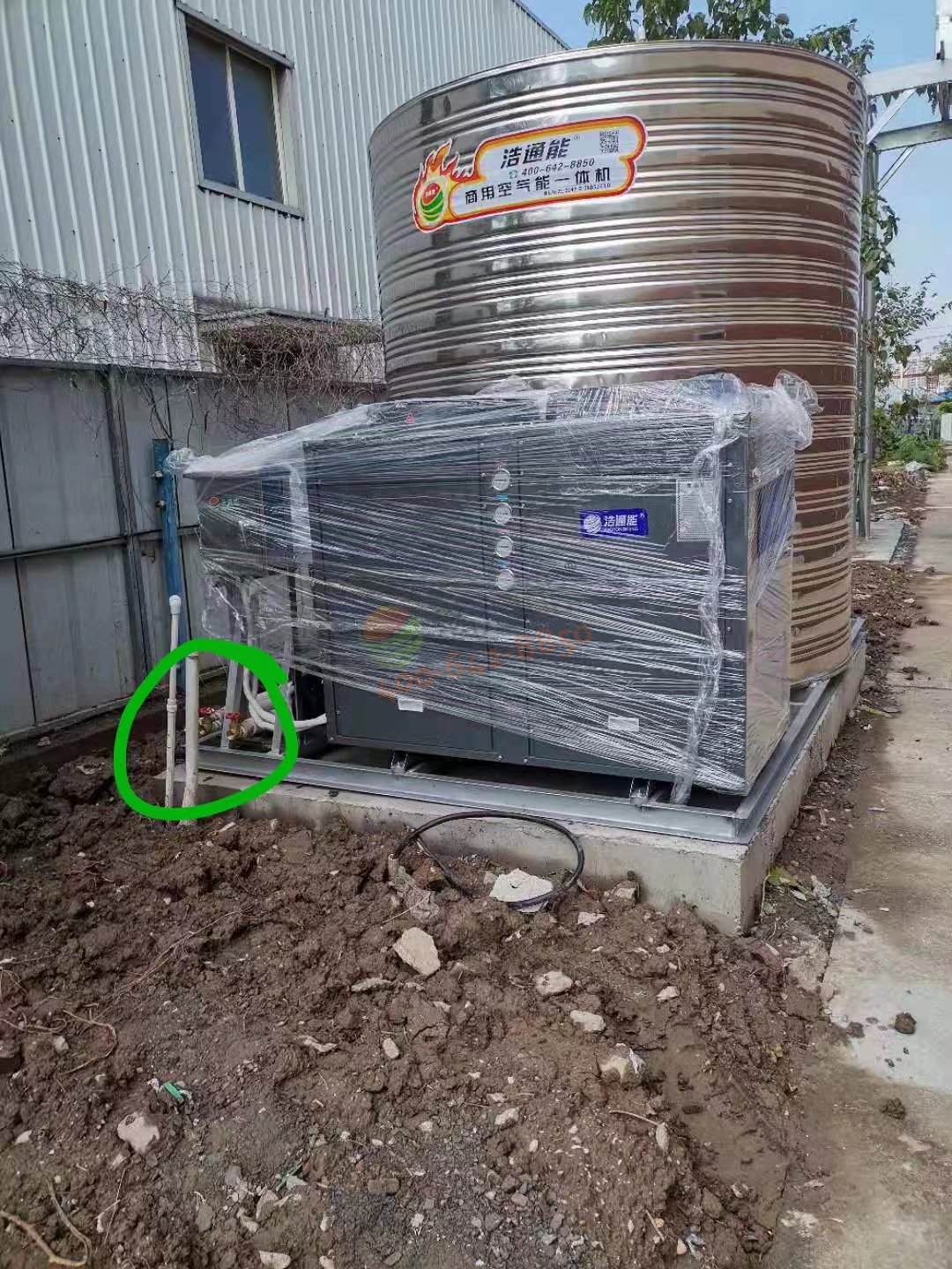 深圳建業工程集團有限公司 工地項目部生活區位于:天津市海濱新區第一大街,生活區工人高封用水期達到240人左右,水龍頭接熱水方式,設計10匹匹10匹,用戶反饋足夠使用了。