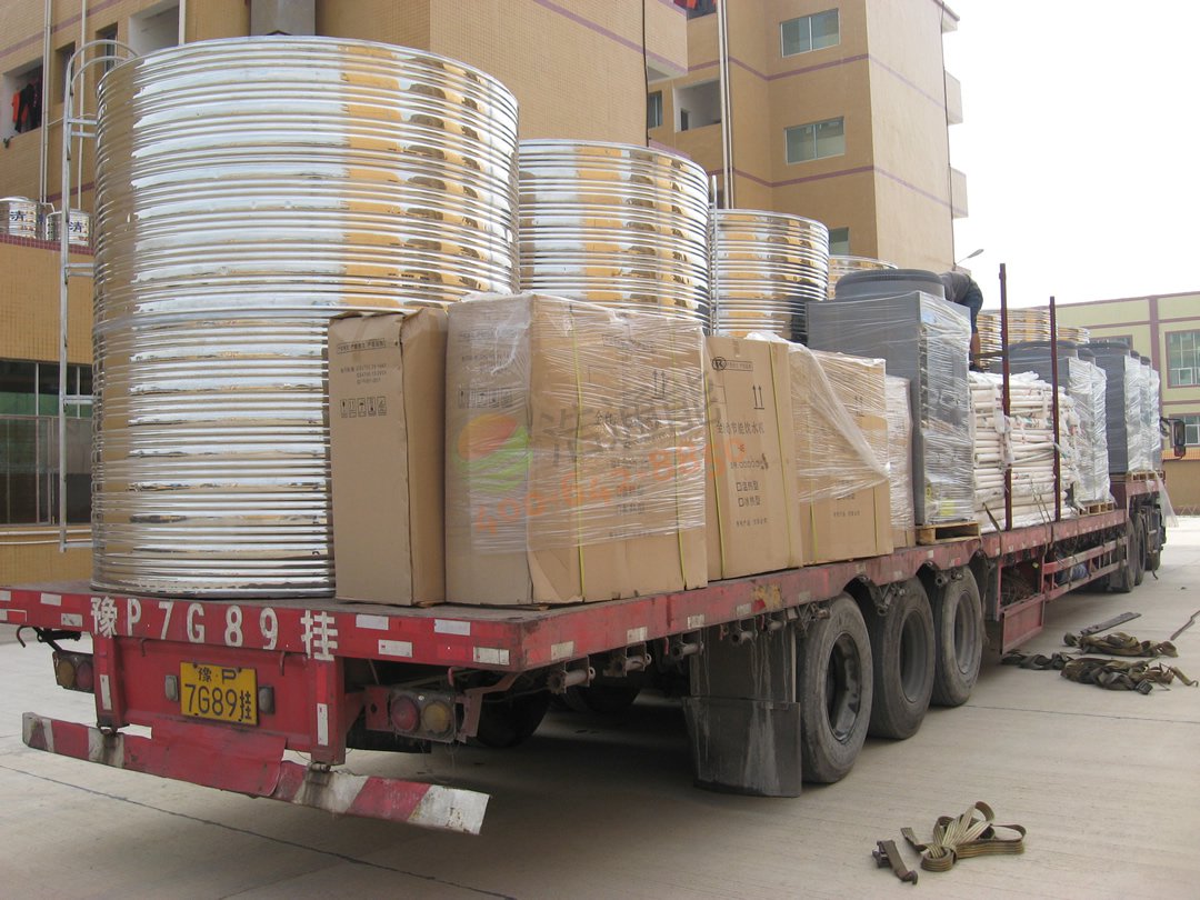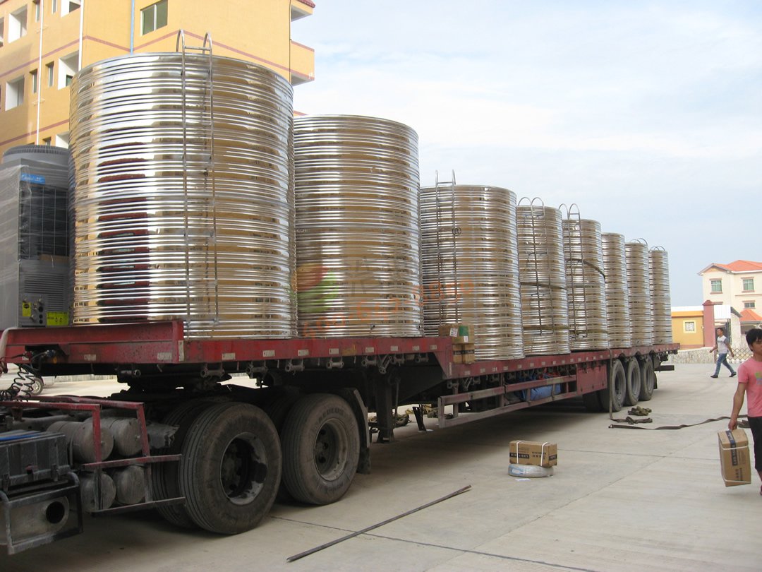 廣東華立中英文學校學生宿舍14號公寓——80噸空氣源熱泵熱水項目-水箱裝車