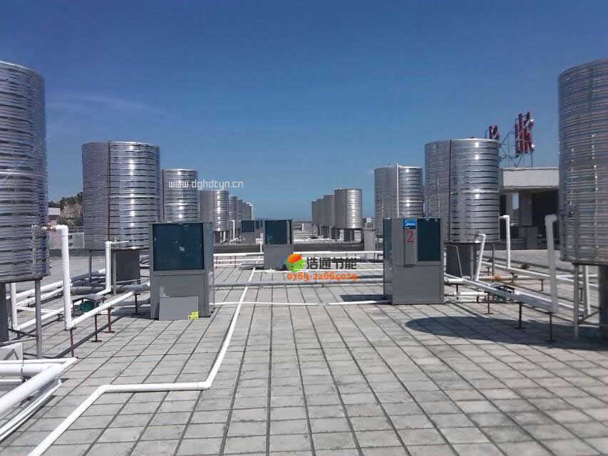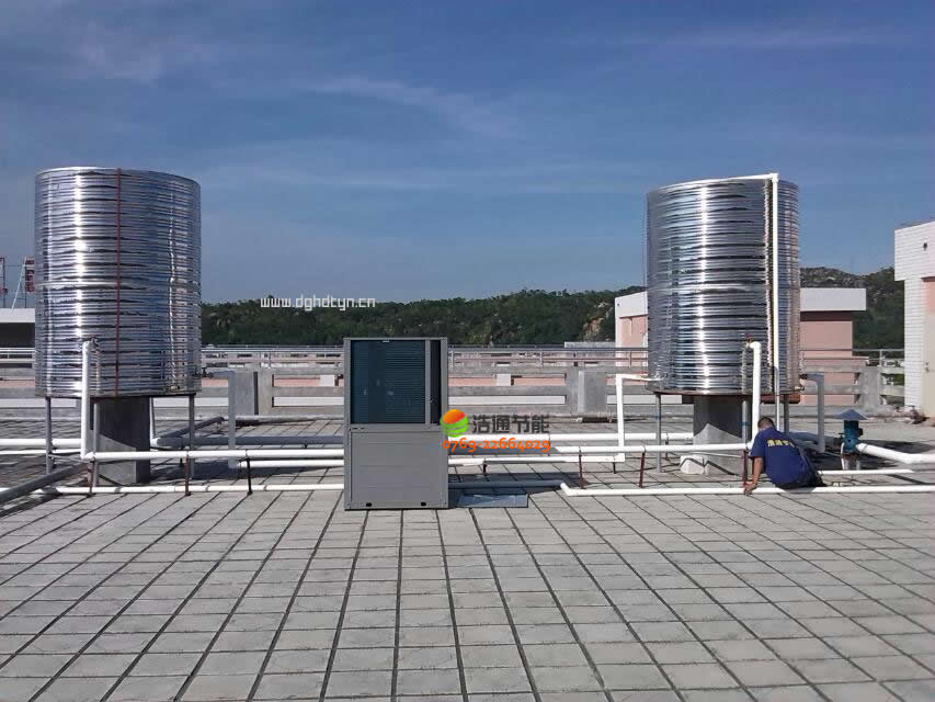 汕頭衛生學校新校區2000人美的空氣能熱泵熱水工程項目2臺機組與水箱