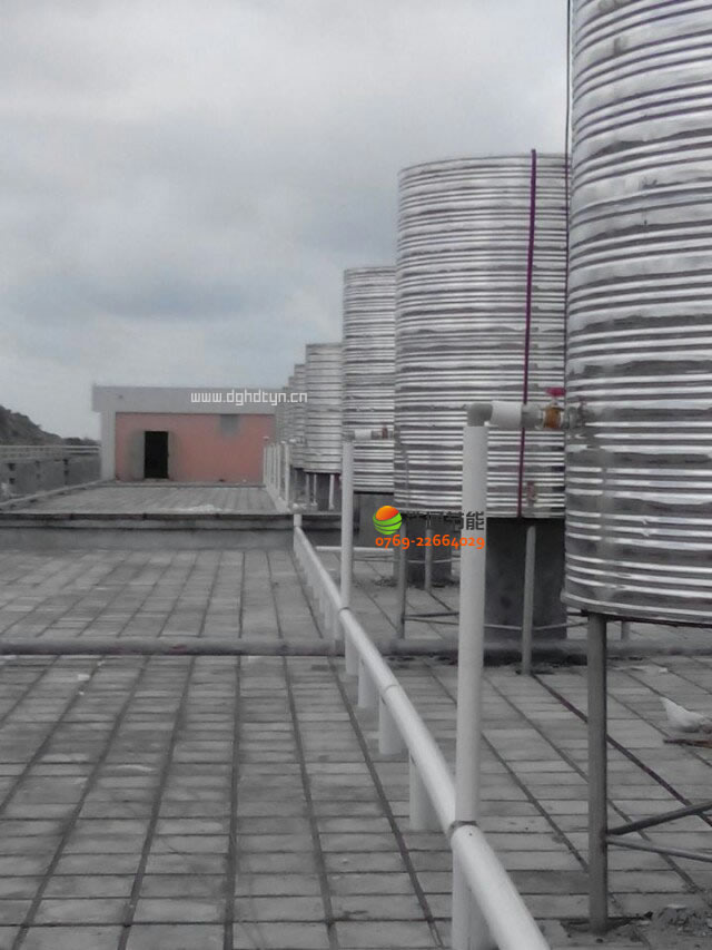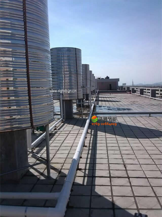 汕頭衛生學校新校區2000人美的空氣能熱泵熱水工程項目水箱安裝于立柱上