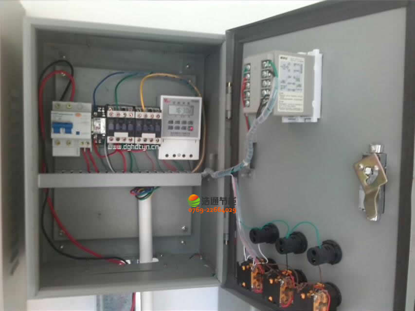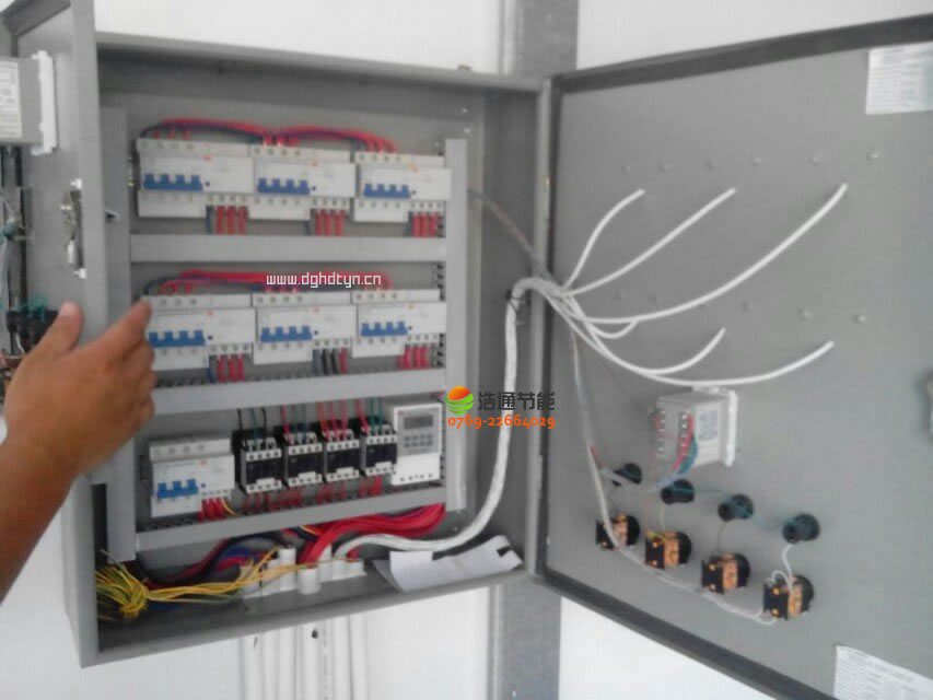 汕頭衛生學校新校區2000人美的空氣能熱泵熱水工程項目電箱內部元器件