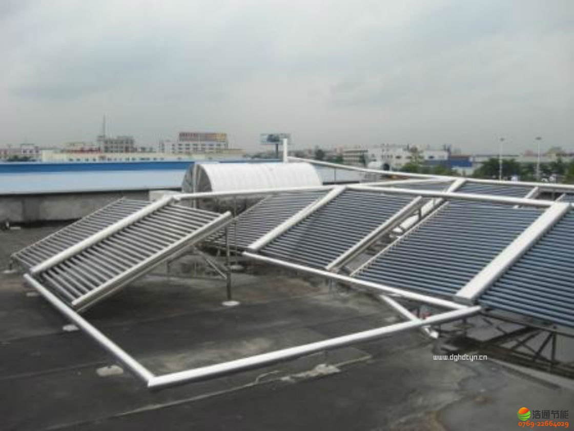 太陽能熱水設備是當今最安全、節能、環保的熱水設備。東莞市每年有280天的晴天,可利用太陽能免費產到50-80℃的熱水;其余陰雨天太陽能免費產到30-45℃,再利用電加熱到50℃。整套熱水設備全智能運行穩定、可靠,每天無需人員開關,為企業提供多項方便,并節省70%的費用。